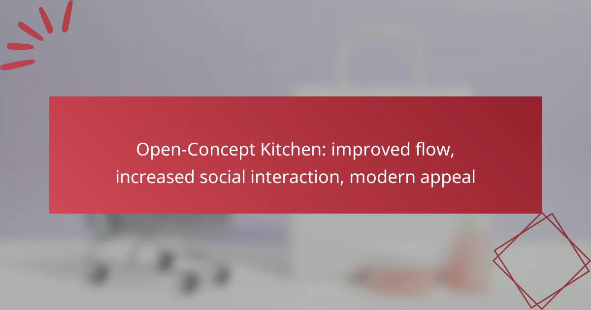 When designing an open-concept kitchen, focus on maximizing space, enhancing social interaction, and ensuring a modern aesthetic. Key considerations include effective space planning, selecting appropriate materials, and creating a cohesive flow between the kitchen and adjoining areas.